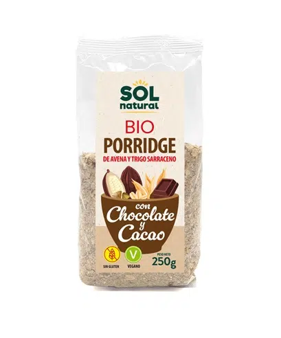 Este porridge de avena y trigo sarraceno de Sol Natural combinada con chocolate y cacao