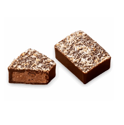 Ingredientes: Chocolate negro 56% (pasta de cacao, azúcar de caña, manteca de cacao, vainilla natural en polvo), azúcar moreno de caña, trigo sarraceno integral, aceite de girasol, manteca de cacao, cacao en polvo desgrasado, crujientes trocitos de trigo sarraceno inflado (agua, harina de trigo sarraceno), coco rallado, virutas de caramelo (azúcar moreno de caña), sal marina