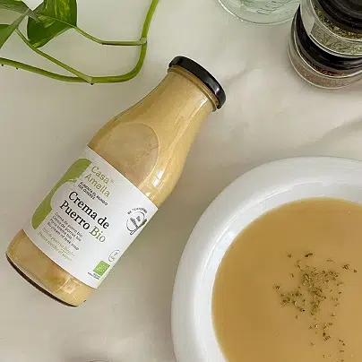 Ingredientes: Puerro, cebolla, patata, agua de cocción, aceite de oliva virgen extra y sal marina.