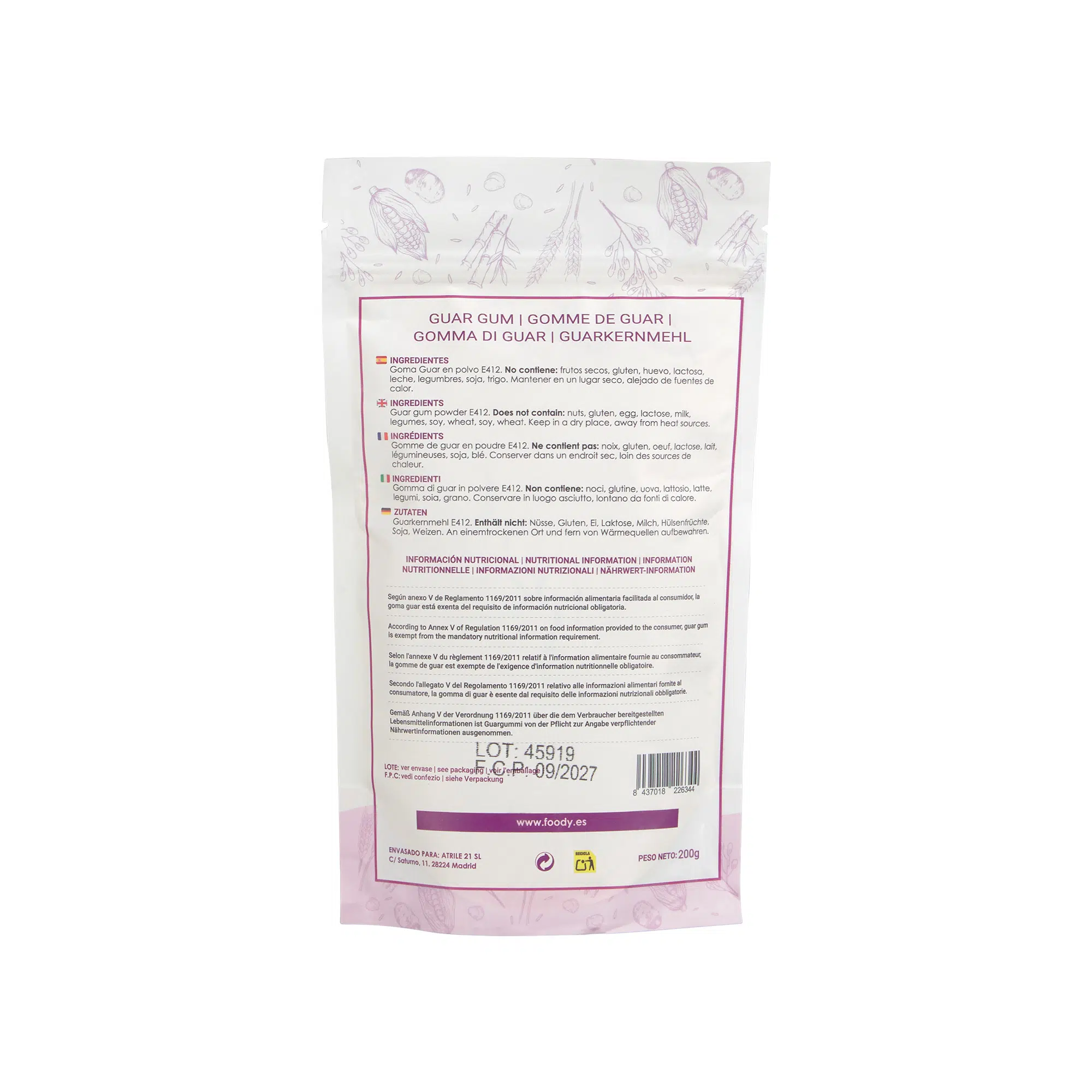 Ingredientes: goma guar E412