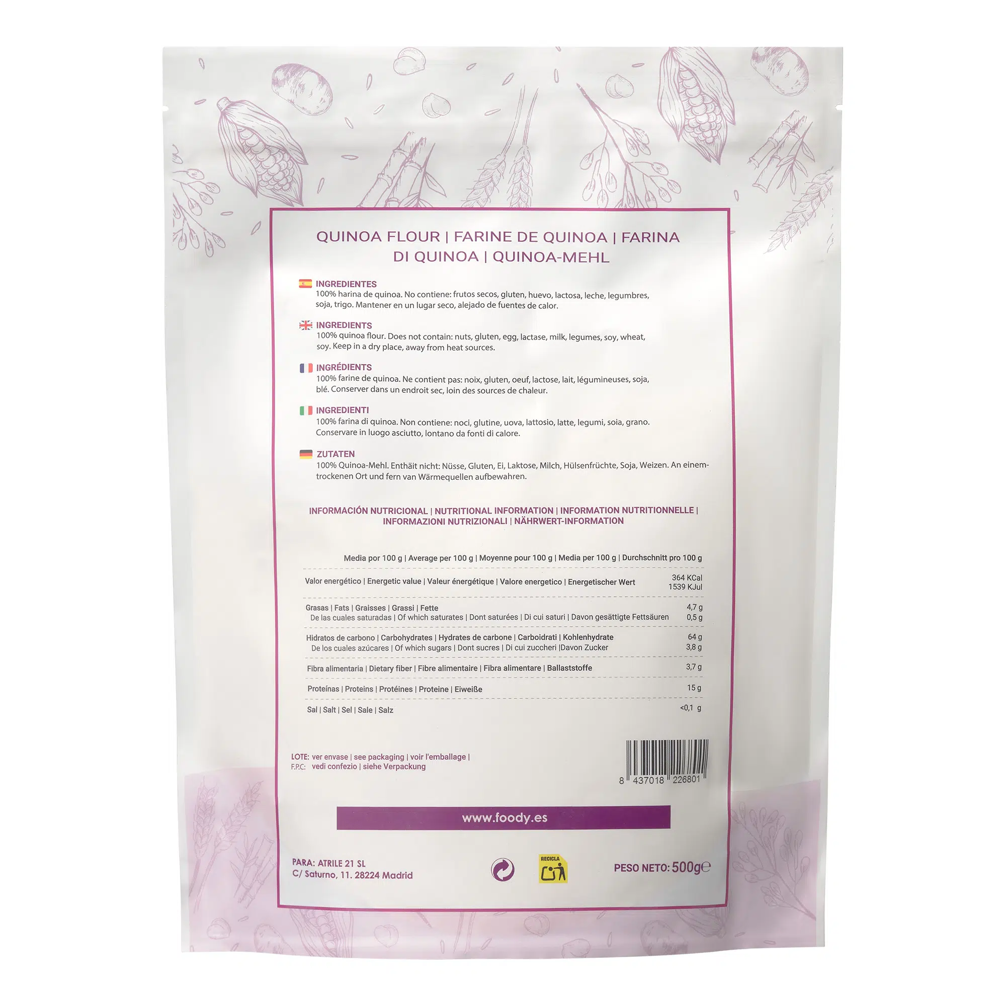 Ingredientes: harina de quinoa blanca 100%