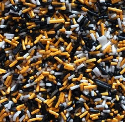 Fideos de azúcar para halloween naranjas metalizados, negros y blancos de azúcar con forma de huesitos para halloween